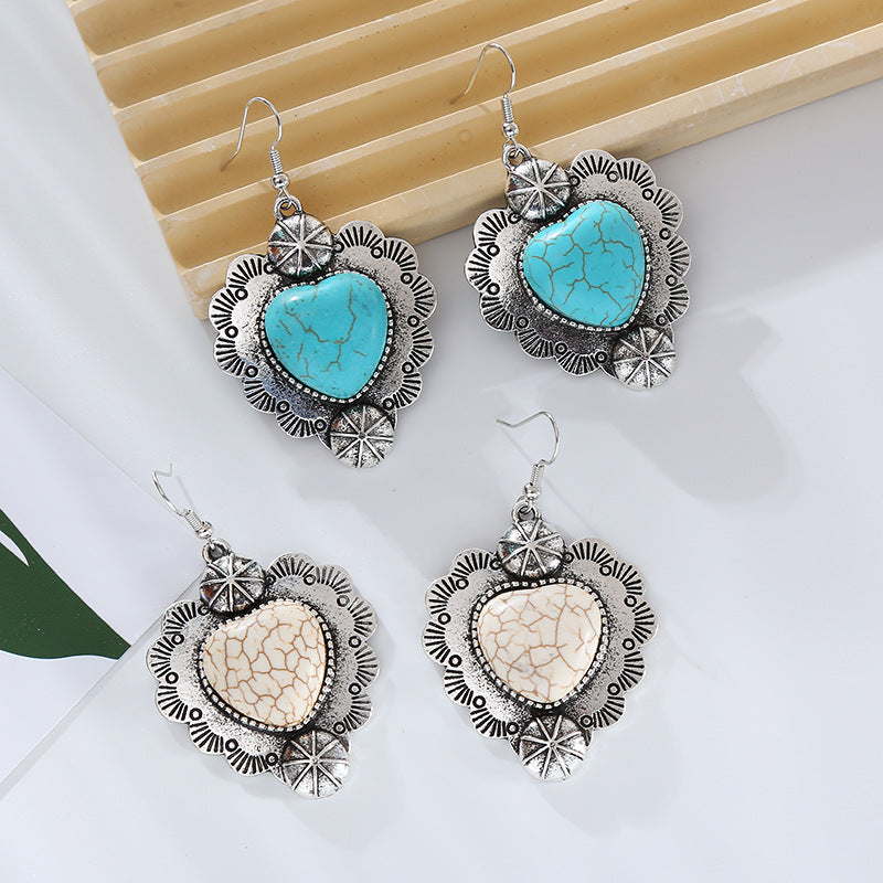 Wholesale Vintage Alloy Plated Antique Silver Inlaid Turquoise Love Earrings
