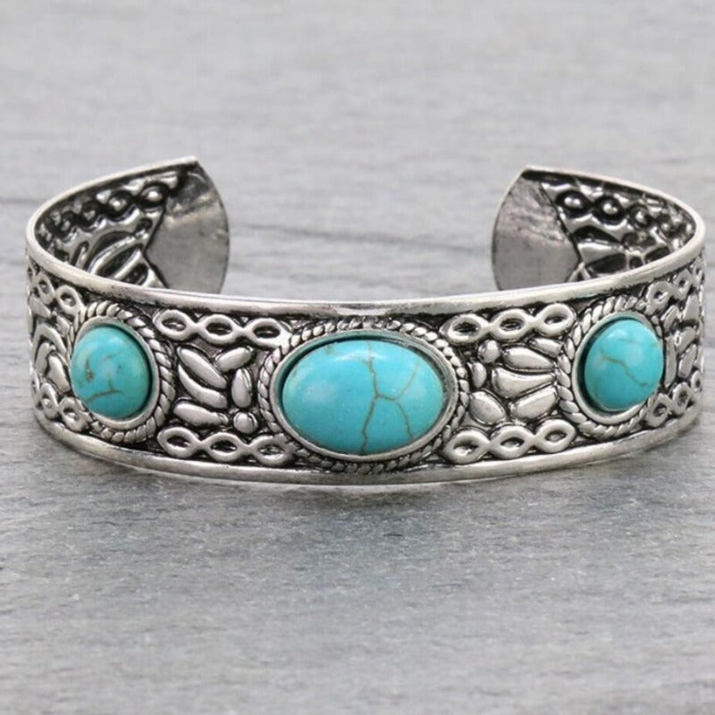 Wholesale Bohemian Vintage Style Inlaid Turquoise Open Adjustable Alloy Bracelet