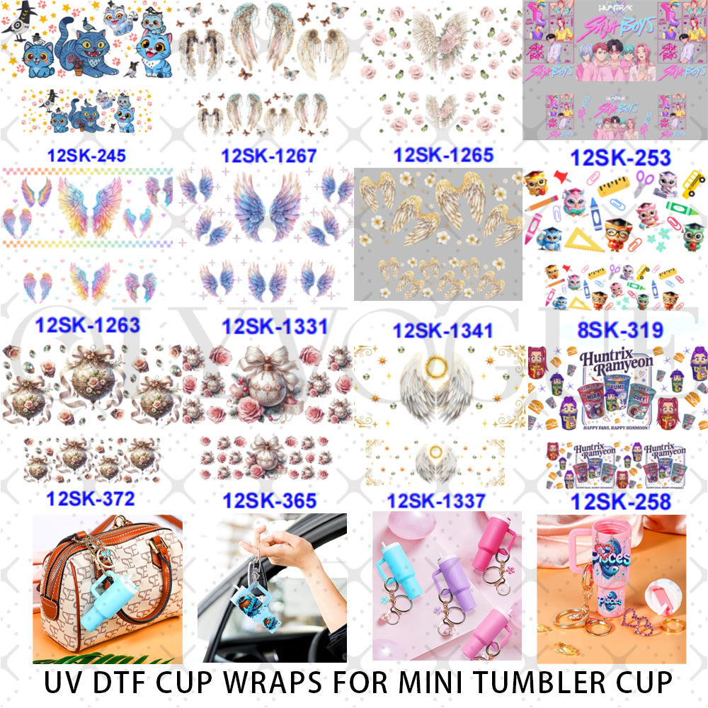 Wholesale 2/4/8 Pcs Winged Flower Back to School UV DTF Wraps Mini Tumbler Cup Keychain Lipstick Holders