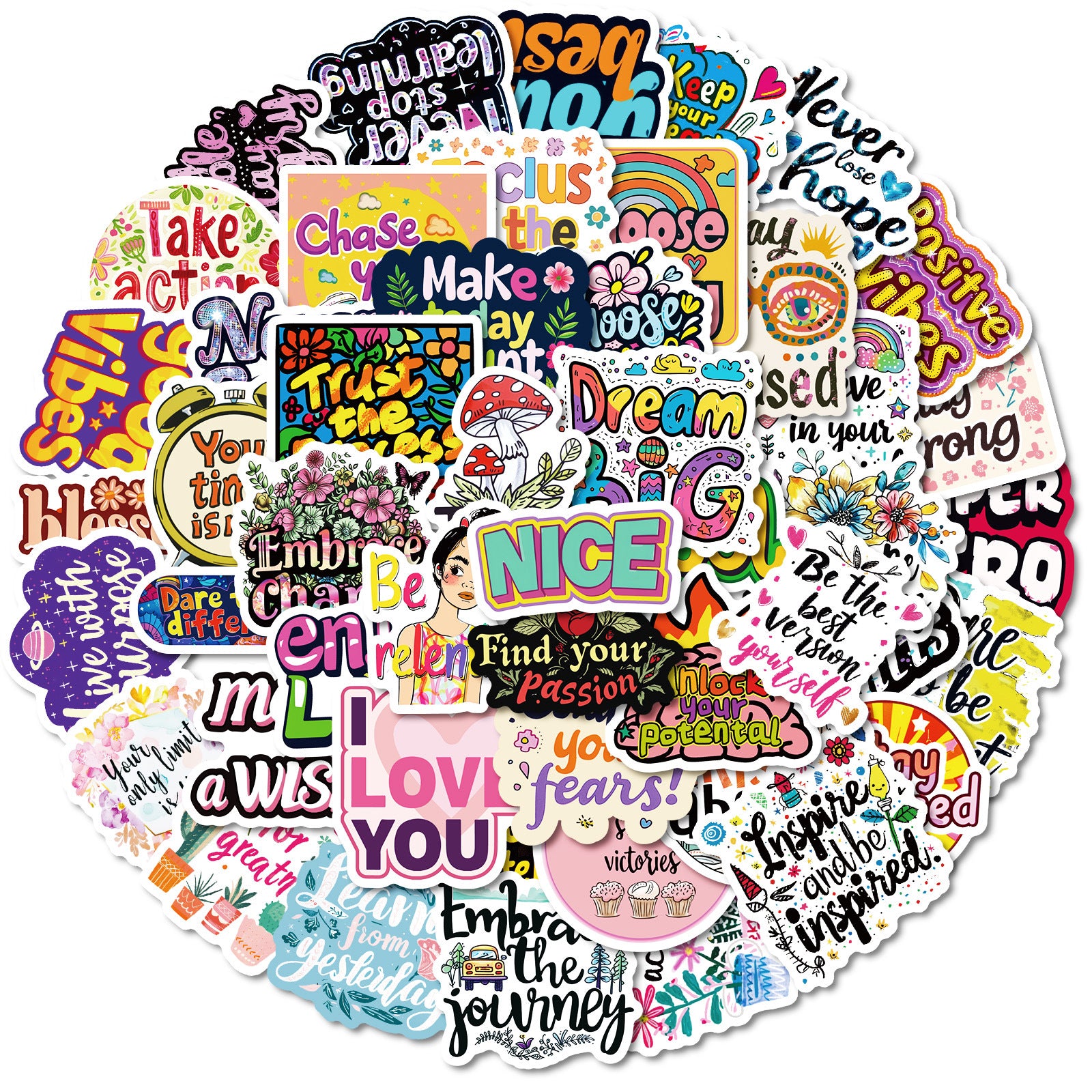 Wholesale 50pcs Colorful Inspirational English Waterproof Vinyl Stickers