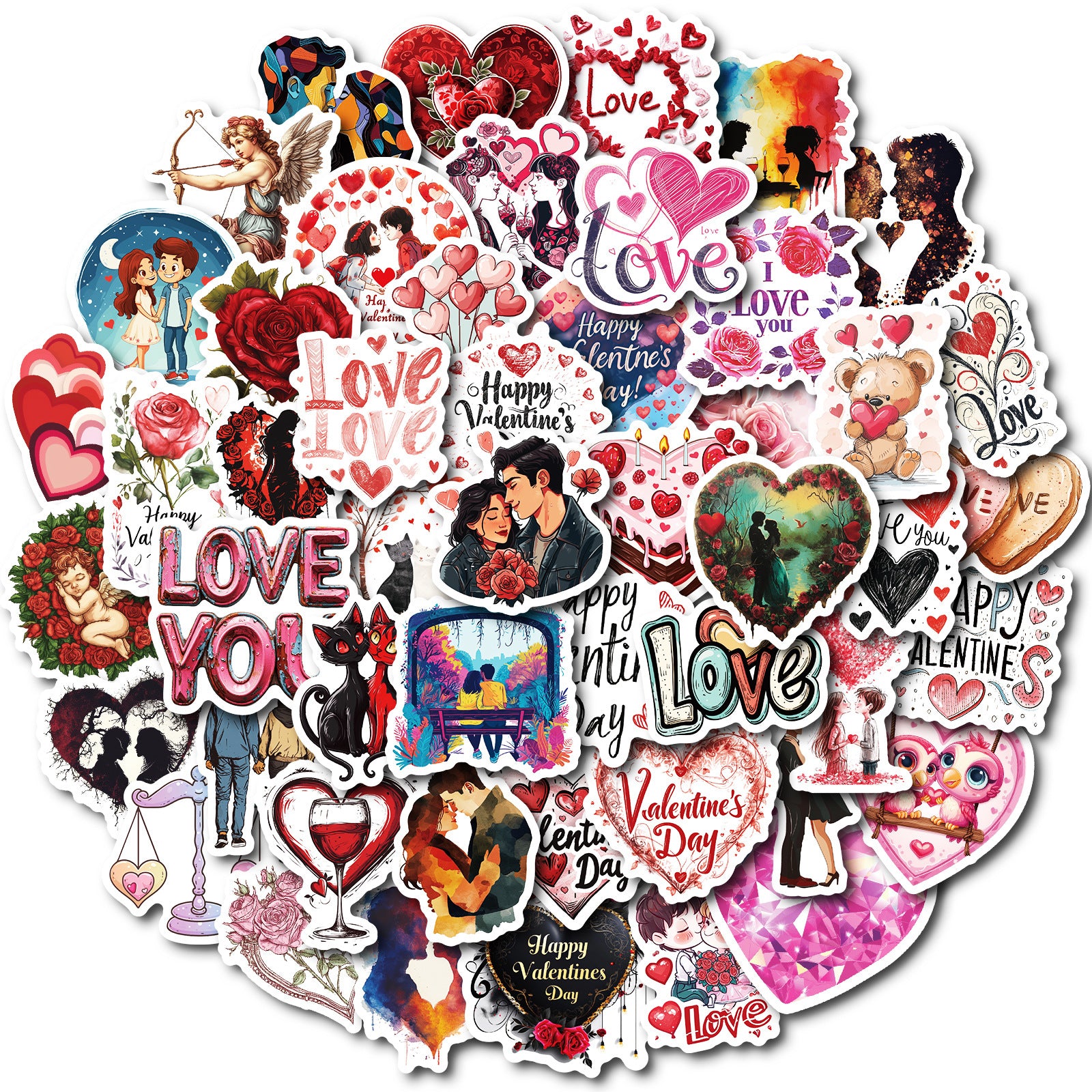 Wholesale 50pcs Colorful Valentine' s Day Series Waterproof Vinyl Stickers
