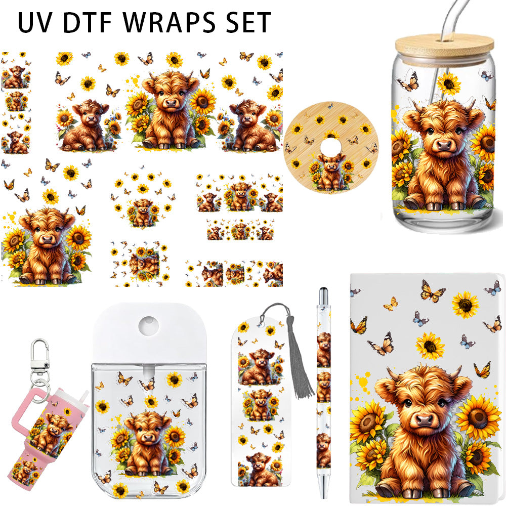 Wholesale 5pcs Cute Cartoon Highland Cow 20oz Cup UV DTF Wraps OLY Exclusive