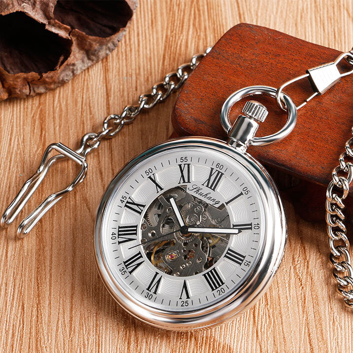 Wholesale Silver case black Roman numerals automatic vintage mechanical watch