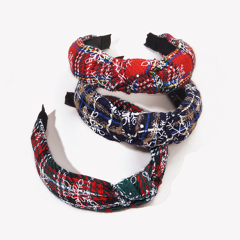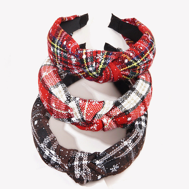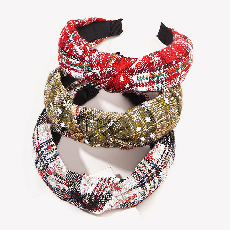 Wholesale Christmas Fabric Knots Wide Edge Hair Hoops
