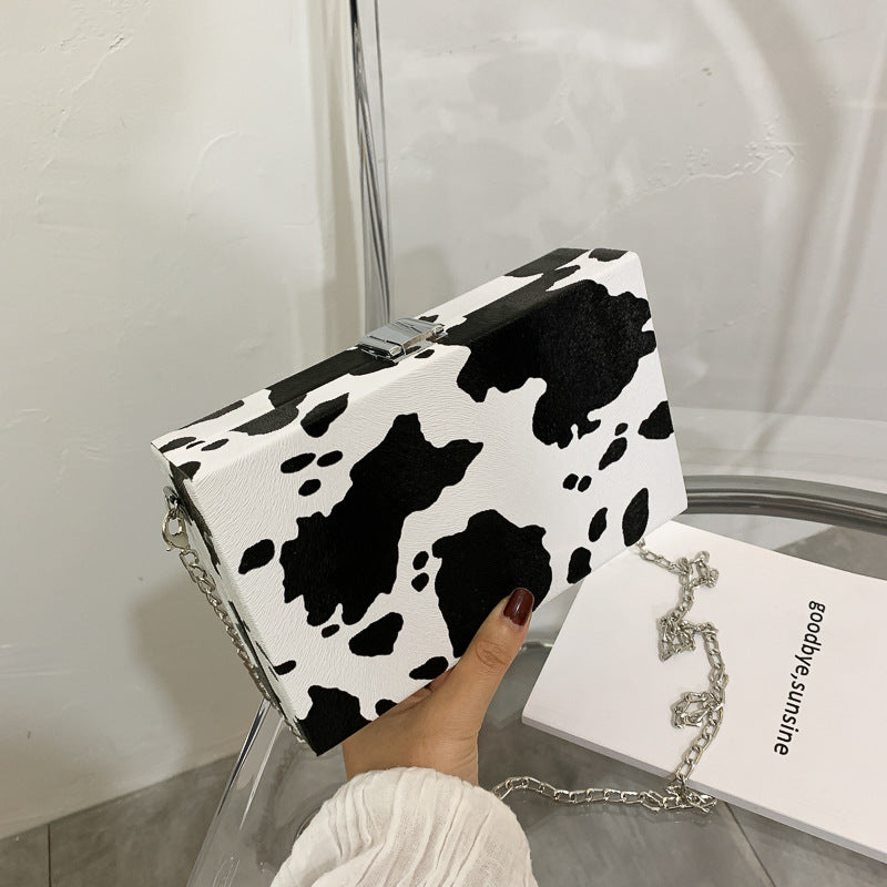 Wholesale PU Cow Pattern Chain Shoulder Messenger Box Bag