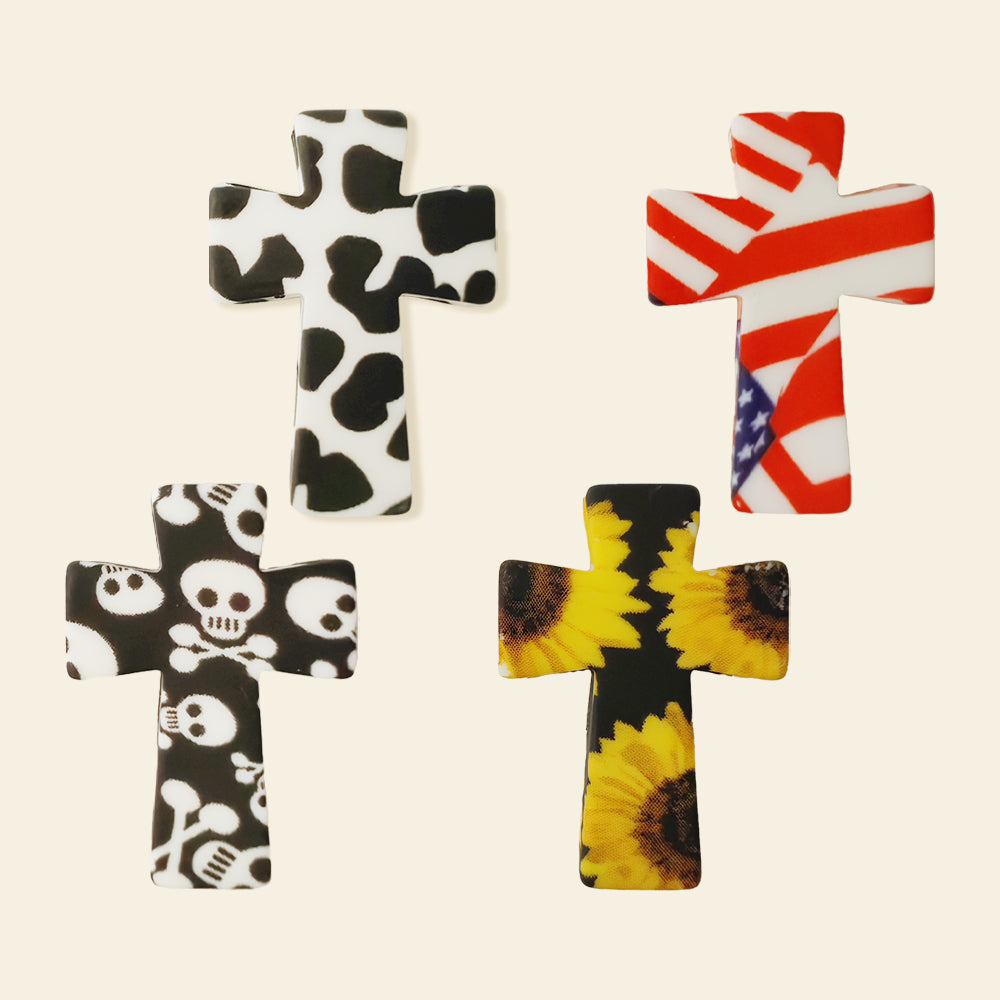 Wholesale 10pcs Cow Pattern Skull Sunflower Cross Silicone Focal Beads