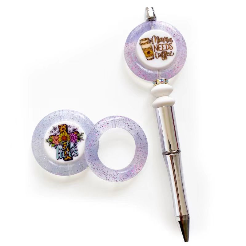 Wholesale 10PCS Sparkling Powder DIY Heart Round Silicone Beads