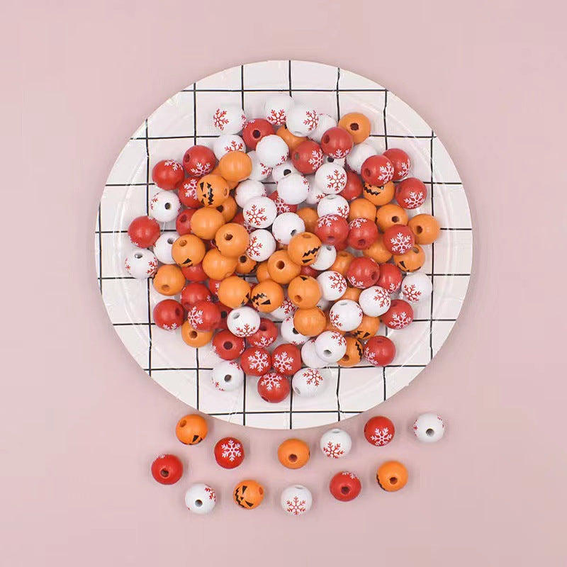 Wholesale 200PCS New Halloween Colorful Checkered DIY Wood Beads
