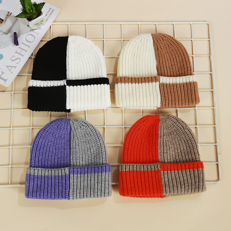Wholesale Contrast Color Thick Warm Two-color Cute Kitten Pattern Knitted Hat
