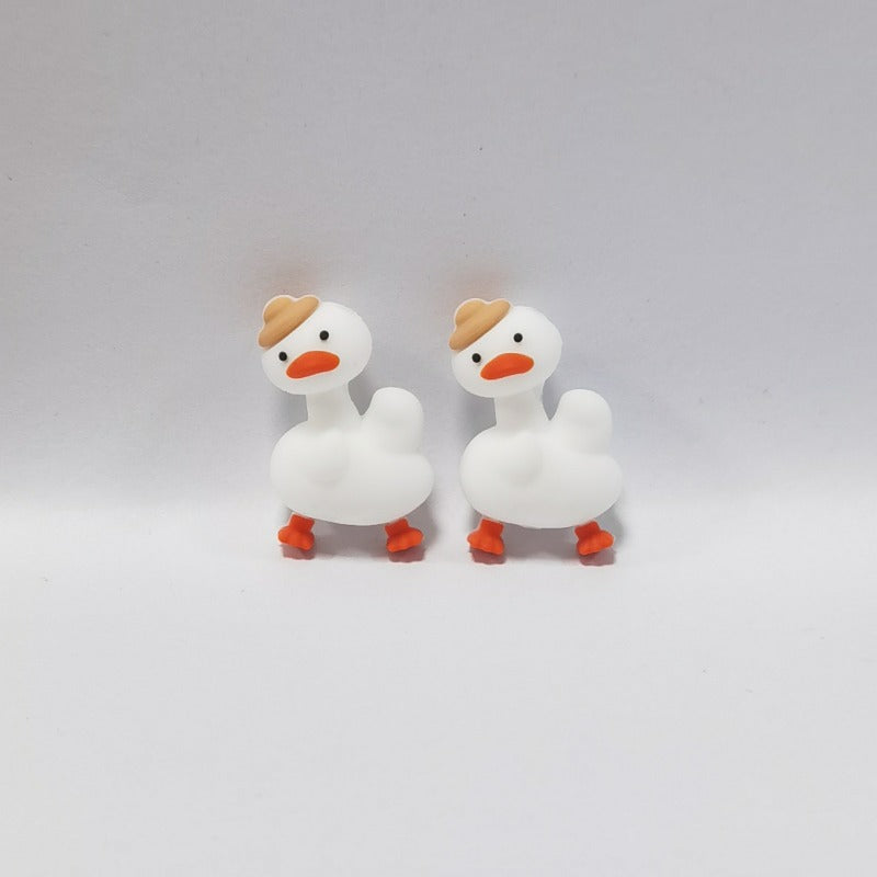 Wholesale 10 pieces of creative round cartoon cute duck flat three-dimensional rubber beads