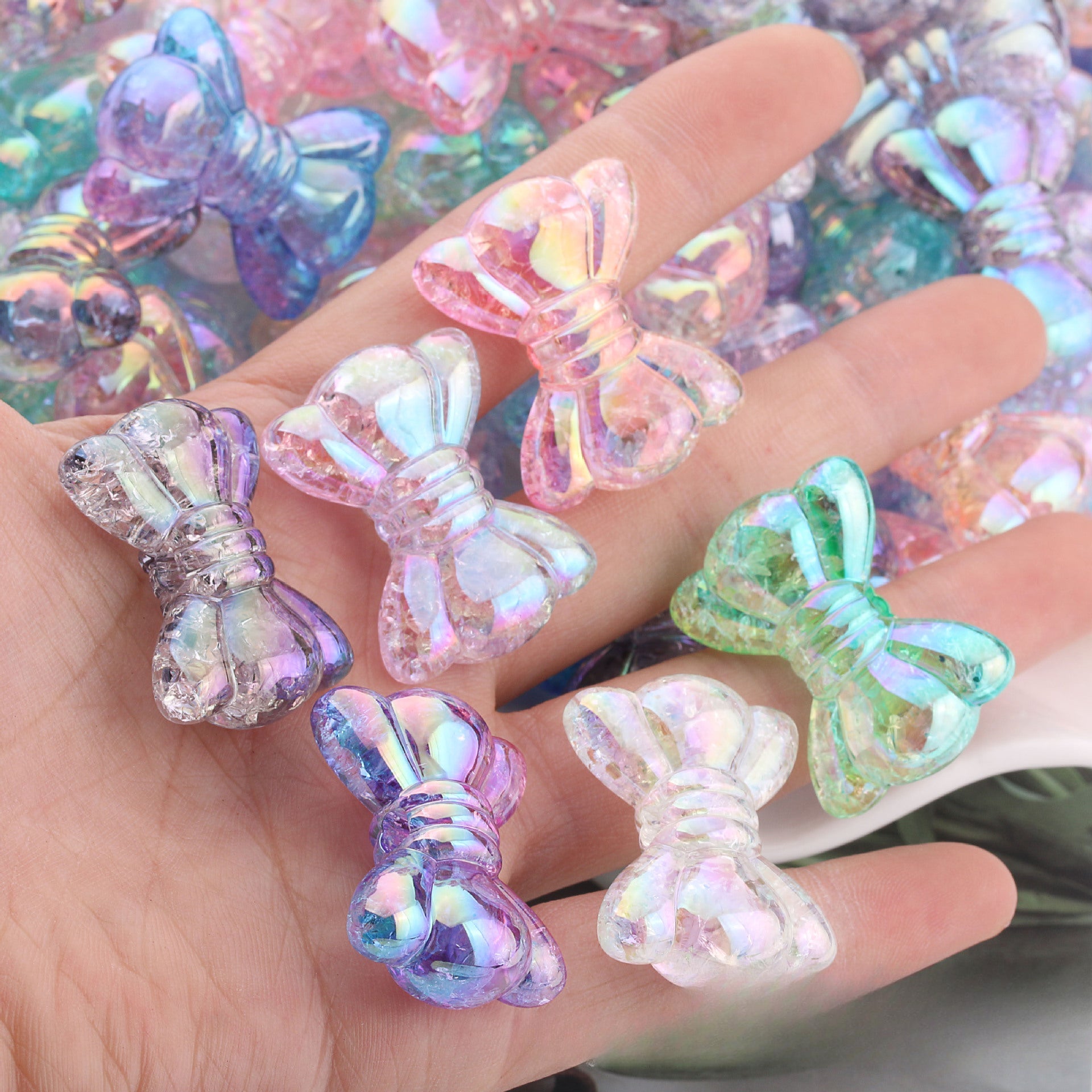 Wholesale 100PCS Acrylic Gradient Burst UV Plated Color Bow Beads