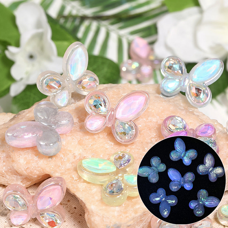 Wholesale 100pcs Luminous UV Fine Sparkling Diamond Set Butterfly Beads