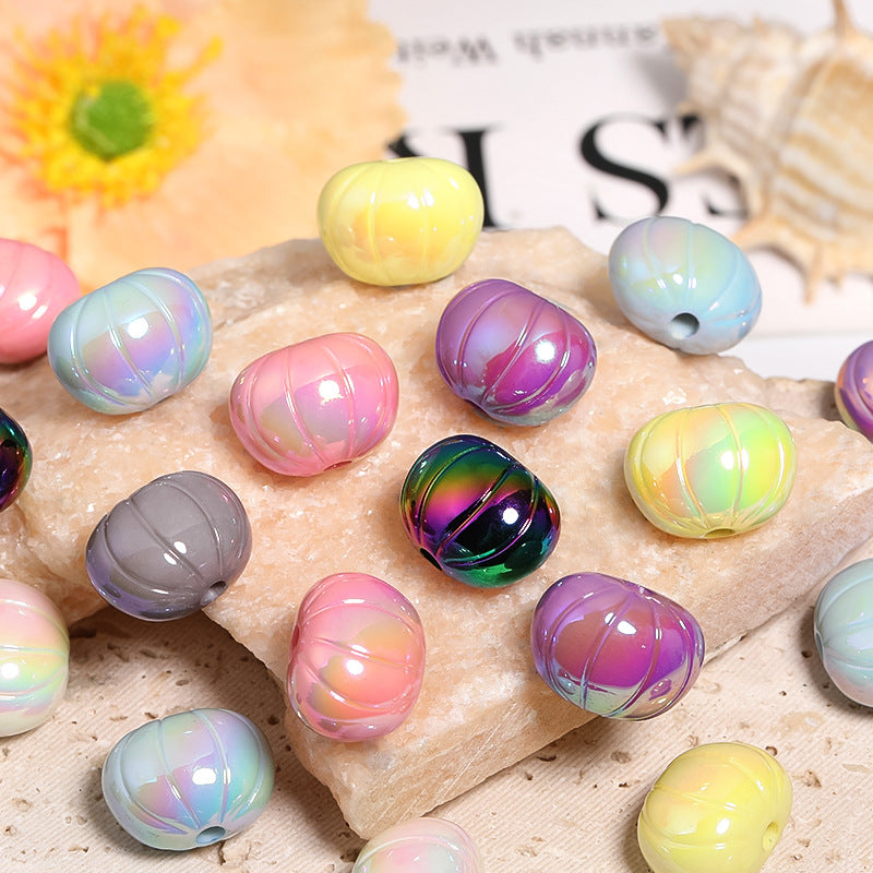 Wholesale 100pcs UV Electroplating Acrylic Solid Color Flat Pumpkin Diy Mobile Phone Chain Beads