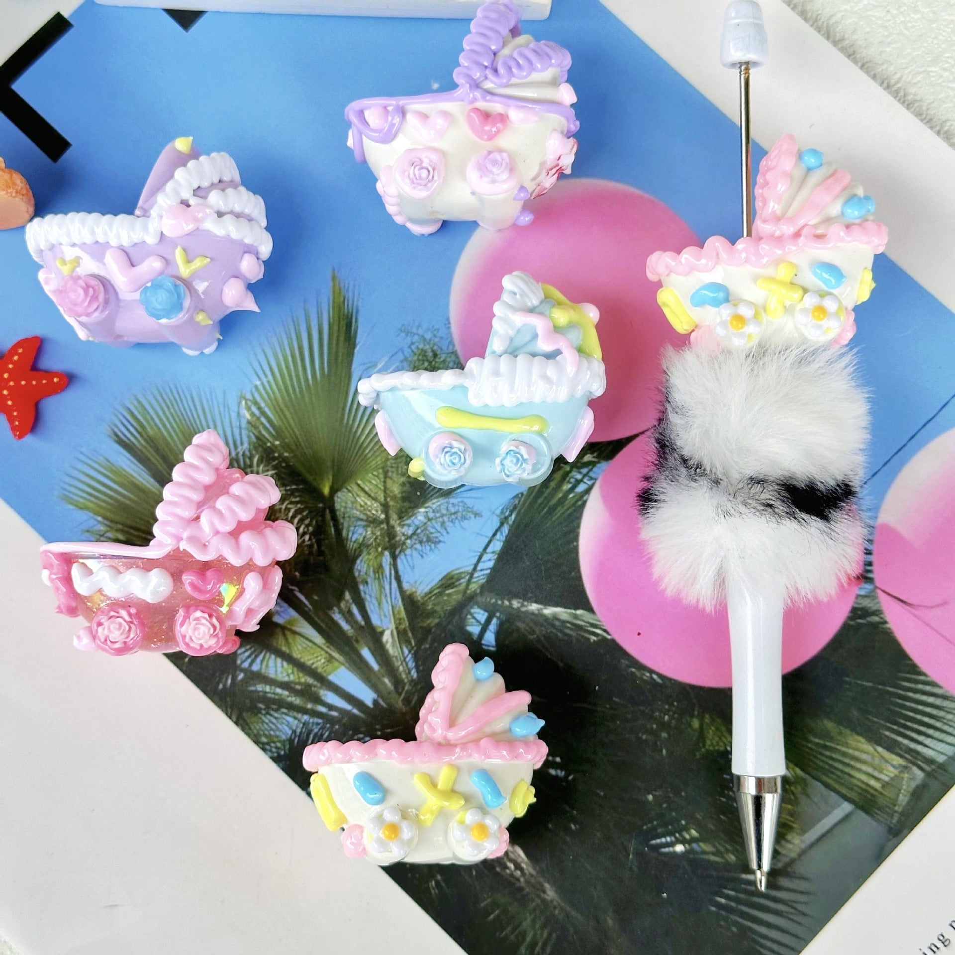 Wholesale 5pcs 3mm Cartoon Pinch Heavy Industry Baby Carriage Hand-painted Beads