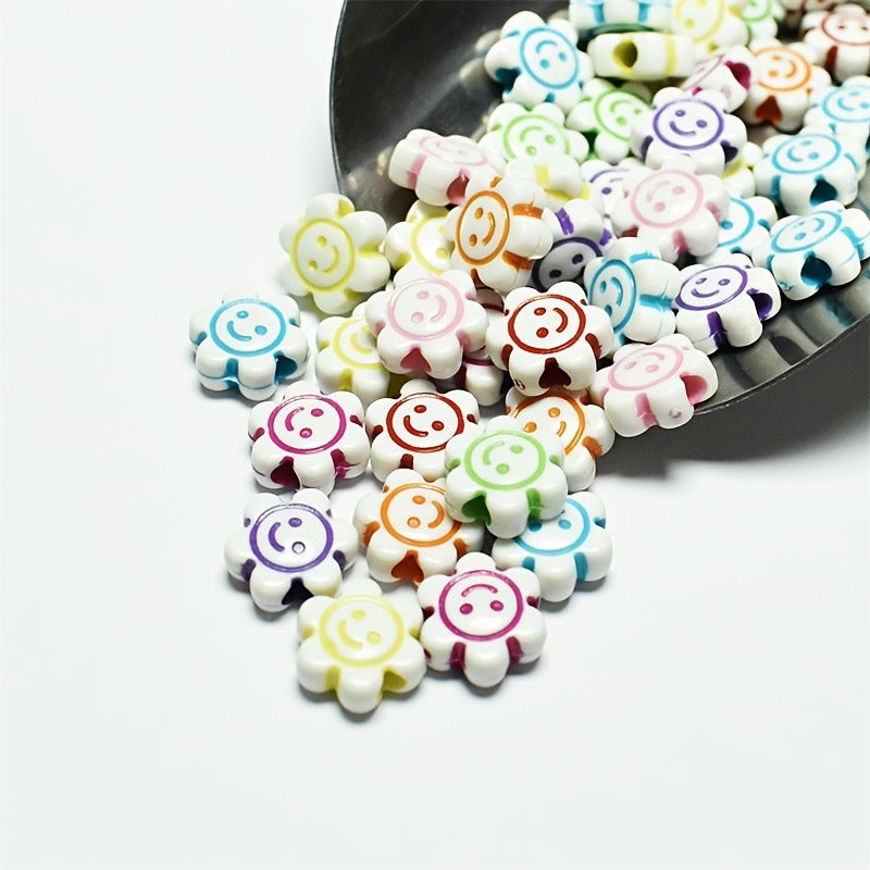 Wholesale 1700pcs/pack 10mm Acrylic Sunflower Smiley Beads