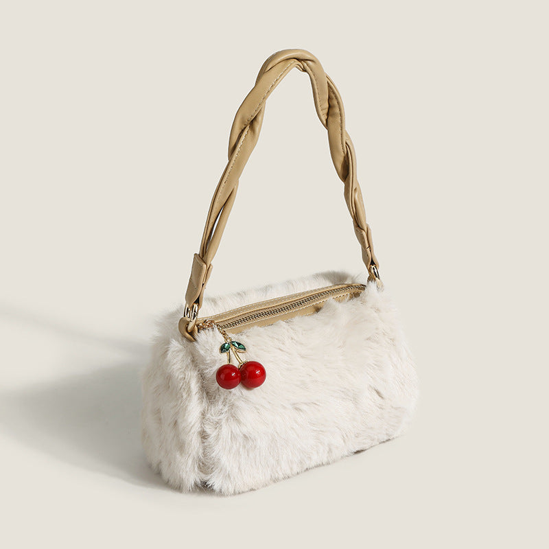 Wholesale 2023 Cherry Plush Velvet Chain Woven Handle Crossbody Bag
