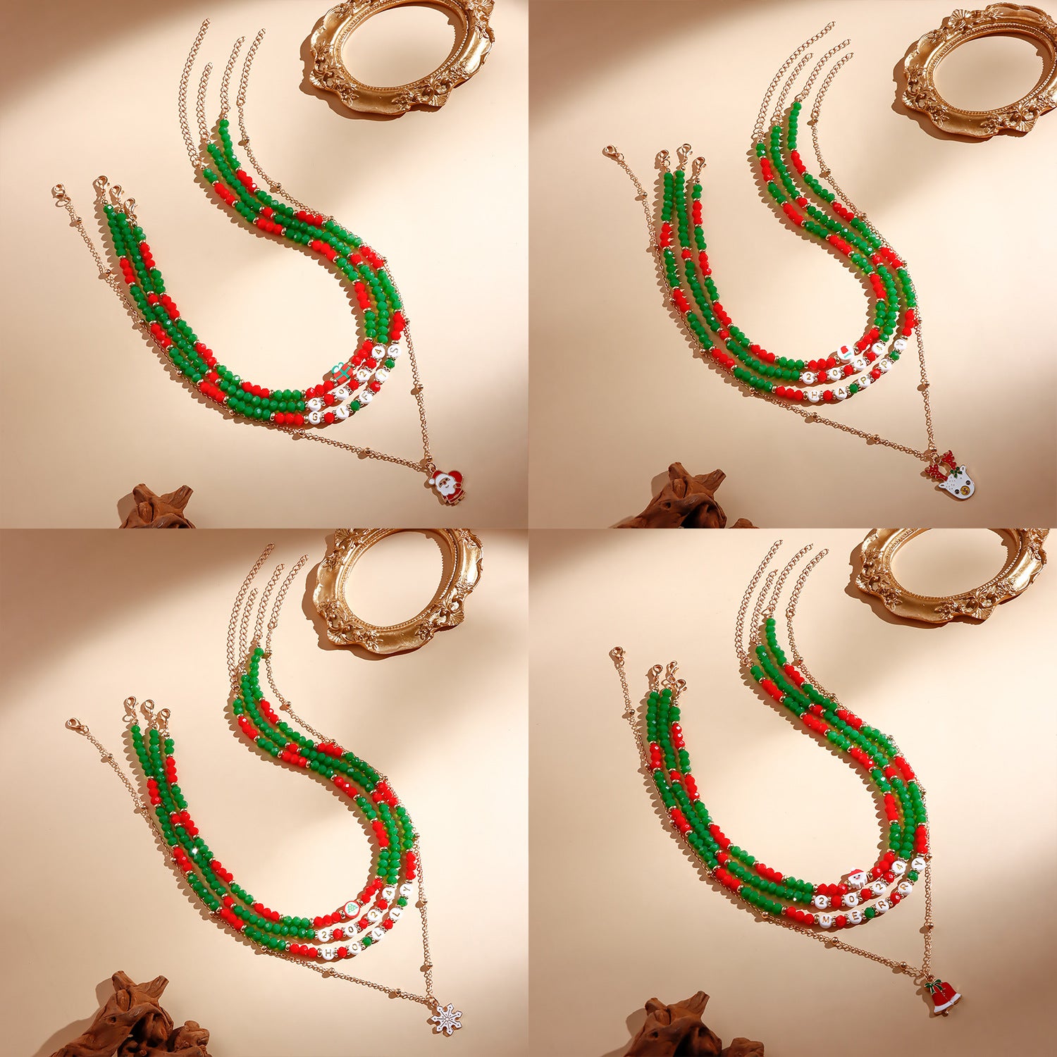 Wholesale Christmas Snowman Elk Imitation Crystal Necklace Set Sweater Chain
