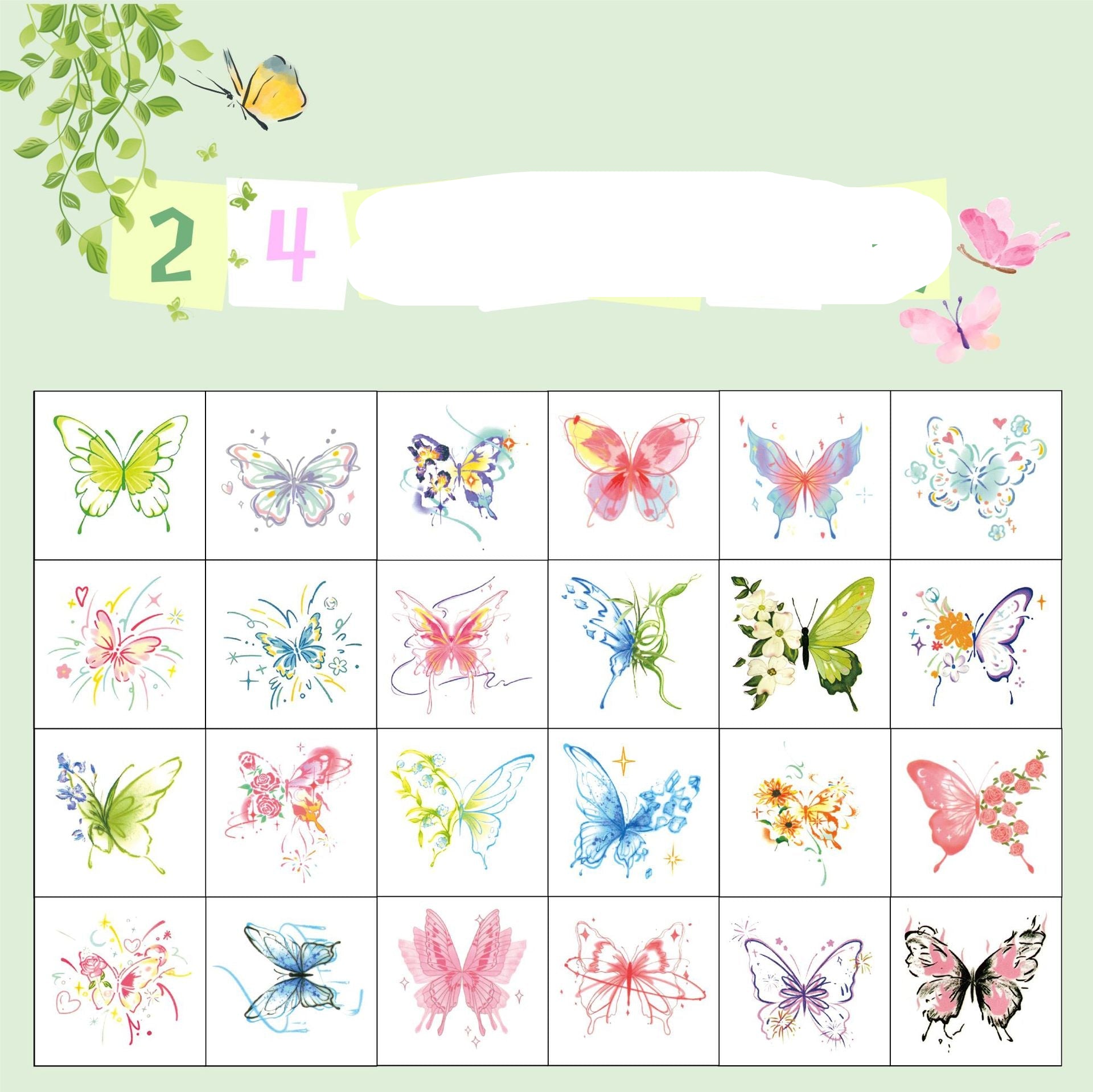 Wholesale 24pcs/pack Colorful Butterfly Tattoo Sticker Beautiful Flower High-end Sense Ins Girly Heart Collarbone Arm Waterproof Long-lasting Tattoo Sticker