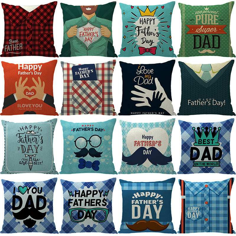 Batch Father's Day Pillow Blue Plaid Letter Sofa Bedside Linen Pillow Case