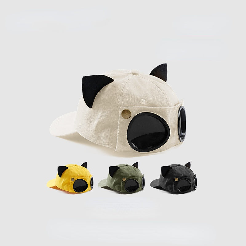 Wholesale cotton polyester cute cat ears aviator glasses baseball cap