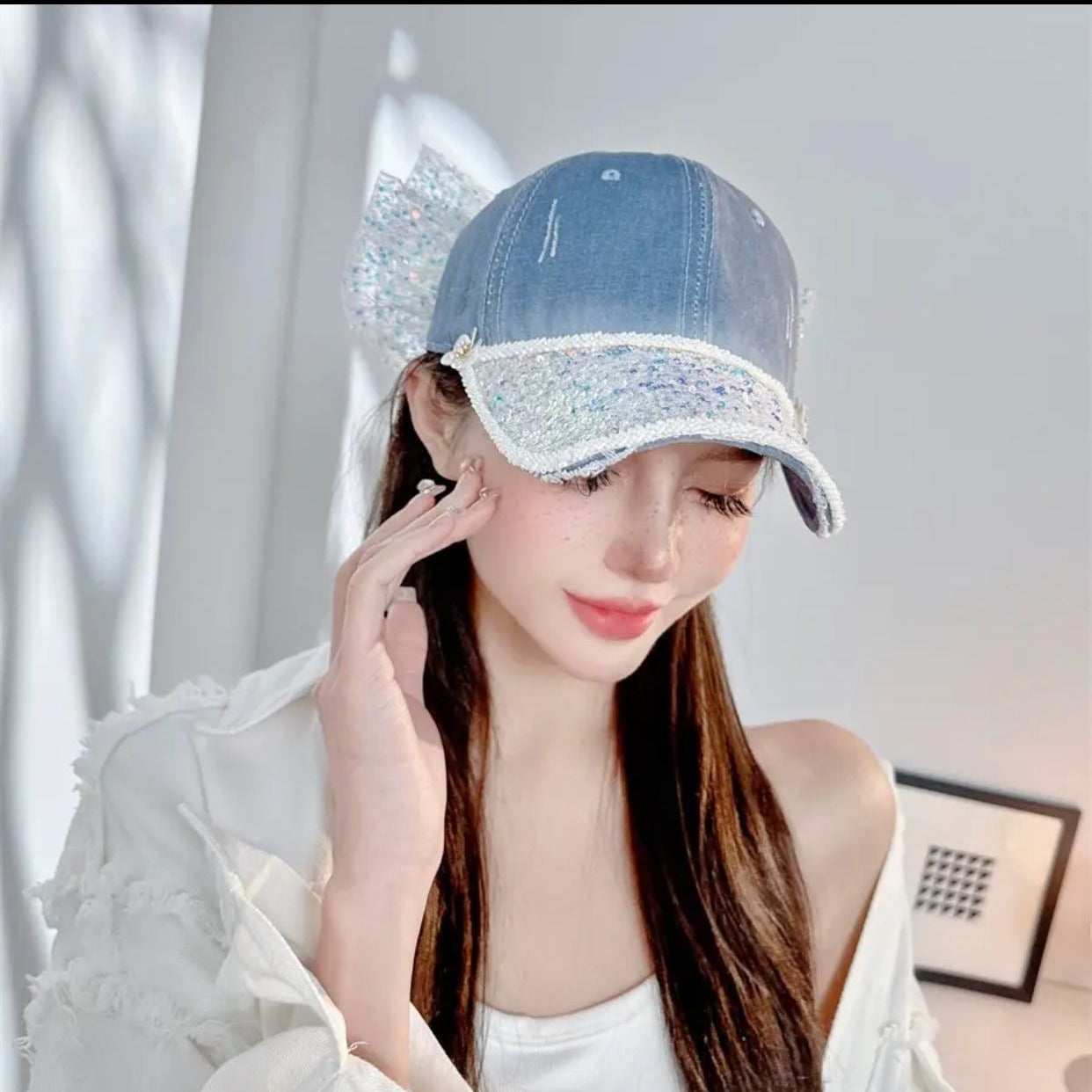 Wholesale New Colorful Sequin Pearl Deep Top Gradient Hole Cloud Bow Baseball Cap