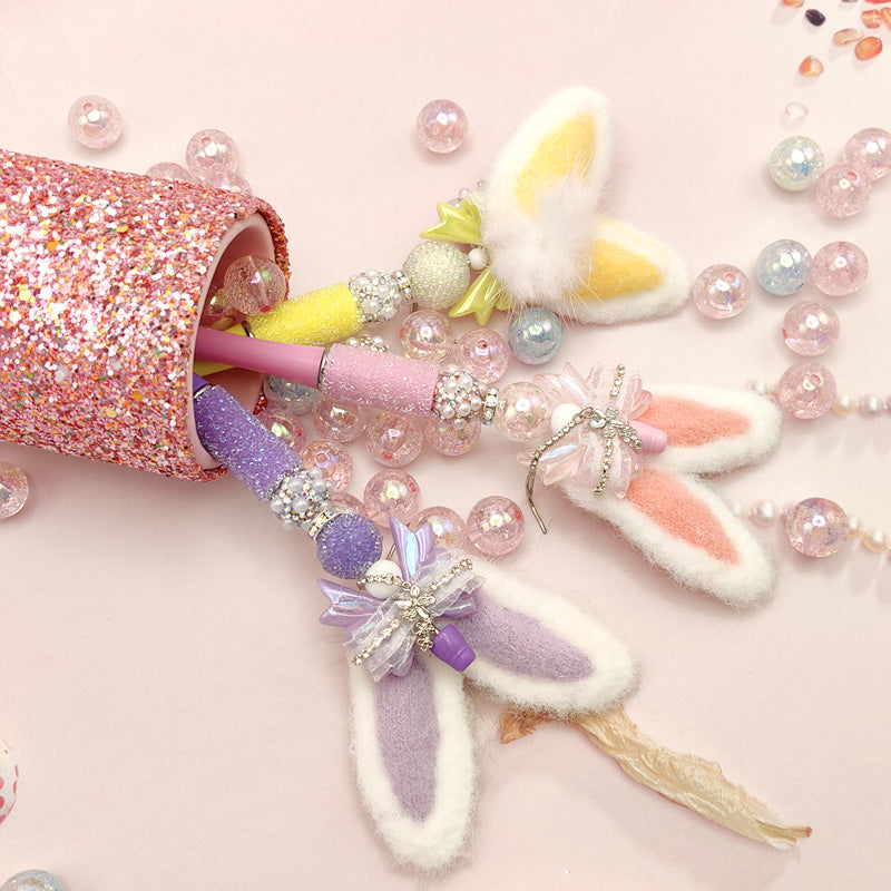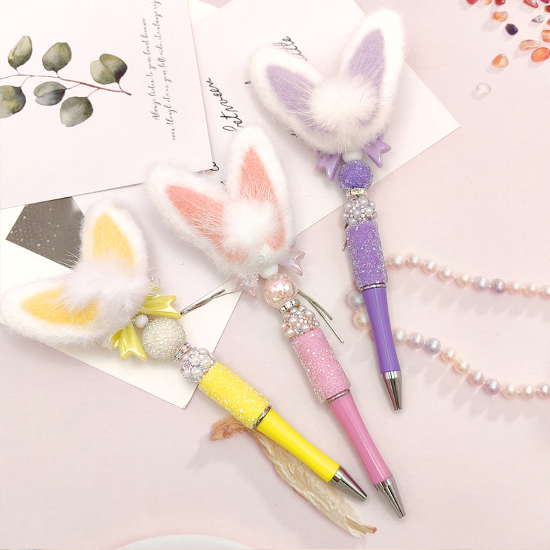Wholesale rabbit ear bow tassel sugar diamond pen handmade fine beaded pen