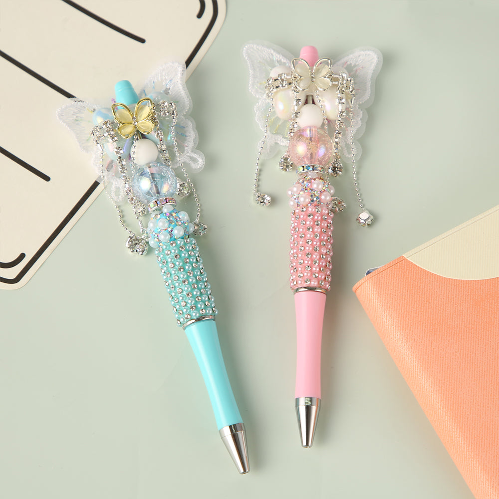Wholesale Butterfly Sugar Diamond Pen Handmade Fine Plastic Beaded Pen