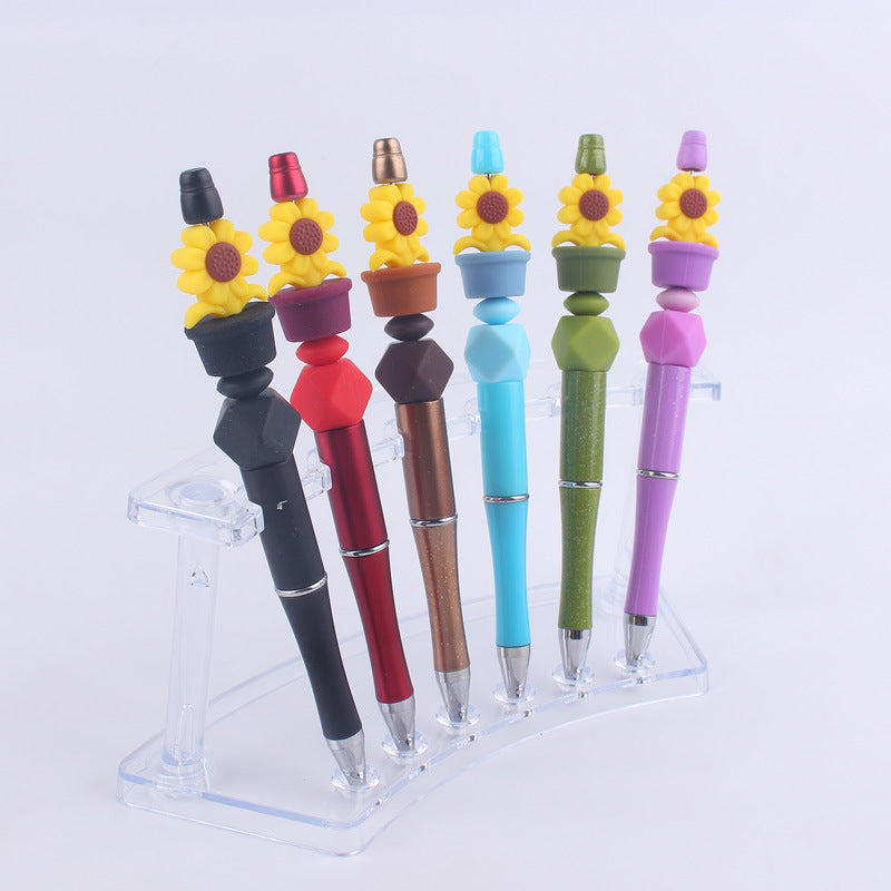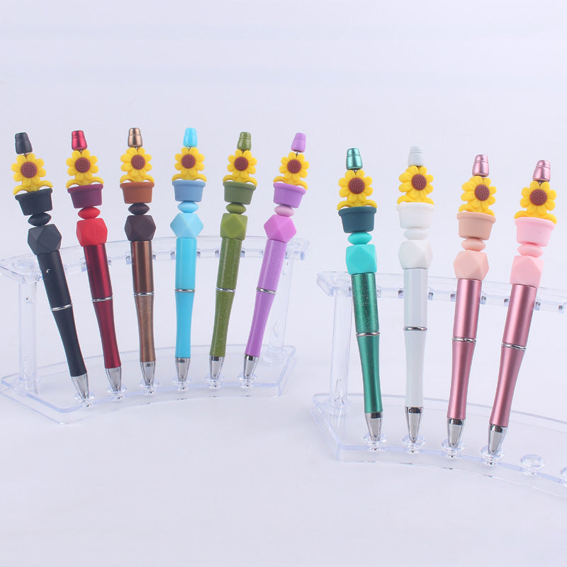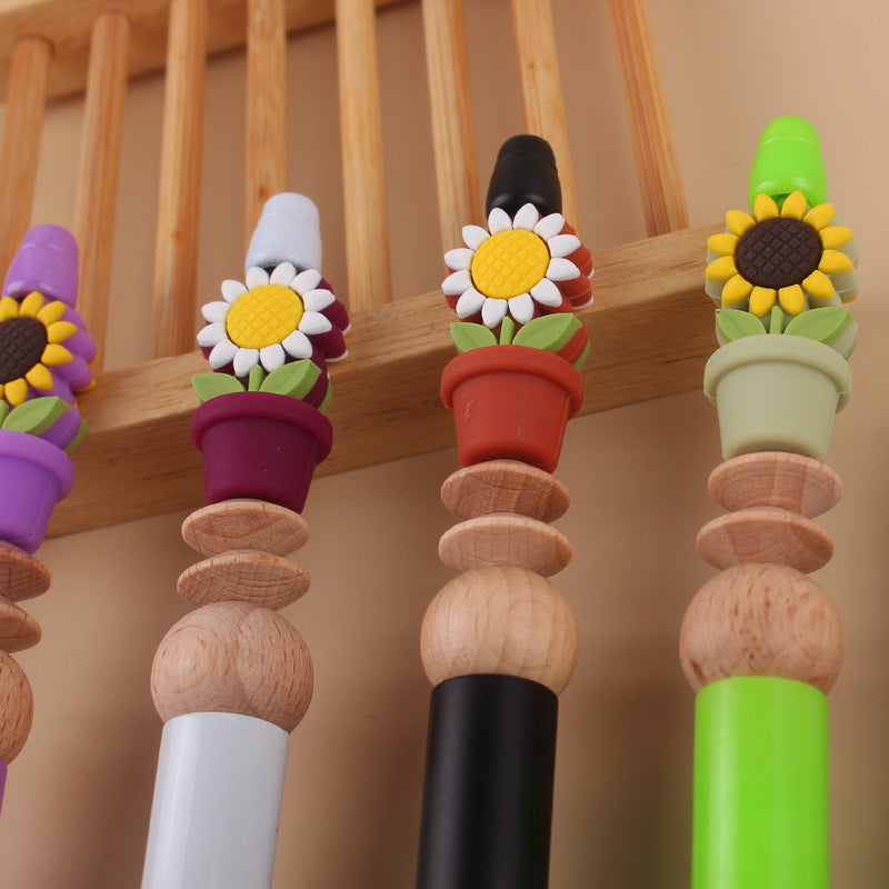 Wholesale Beadable Silicone Beaded Sunflower Potted Wooden Beads Plastic Ballpoint Pen