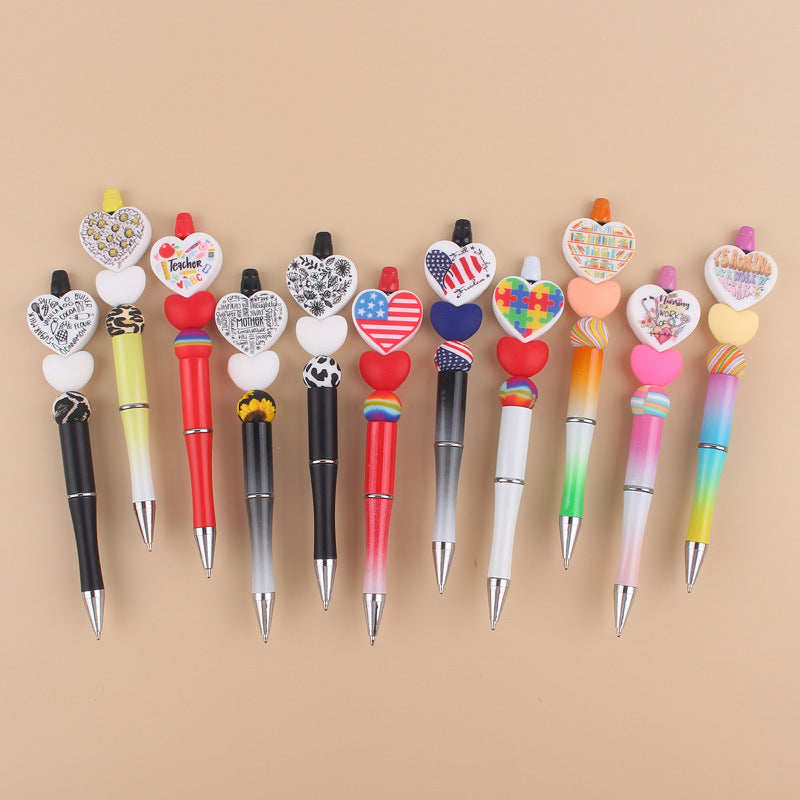 Wholesale Cartoon Love Series Beadable Silicone Beaded Ballpoint Pen