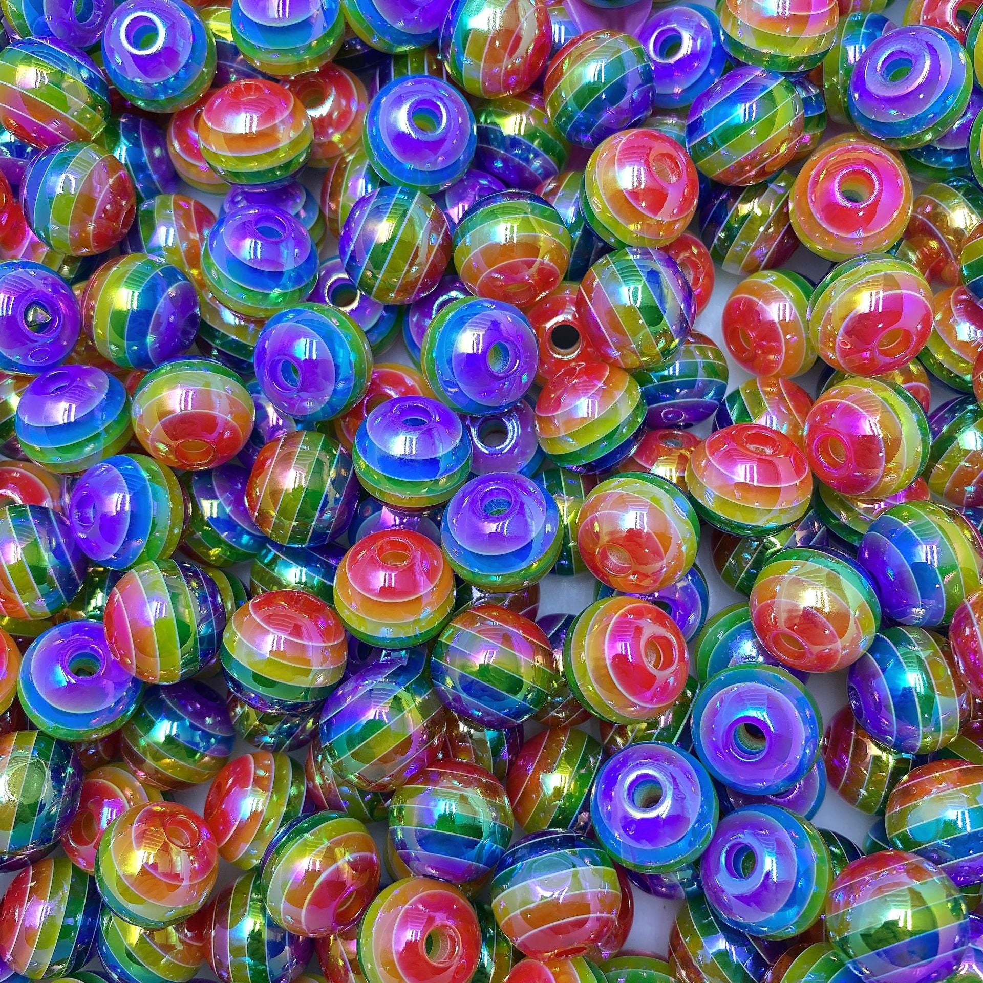 Wholesale 10pcs/pack 16mm Children's Fun Stripes Contrasting Color Plating Rainbow Beads