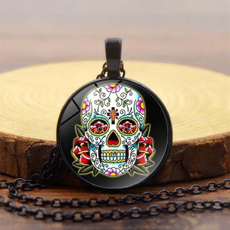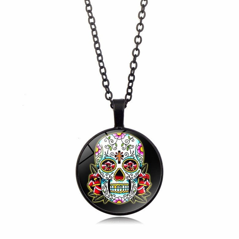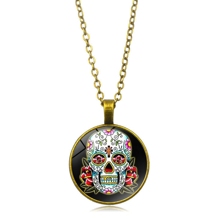 Wholesale Mexican Sugar Skull Time Gemstone Pendant Alloy Necklaces