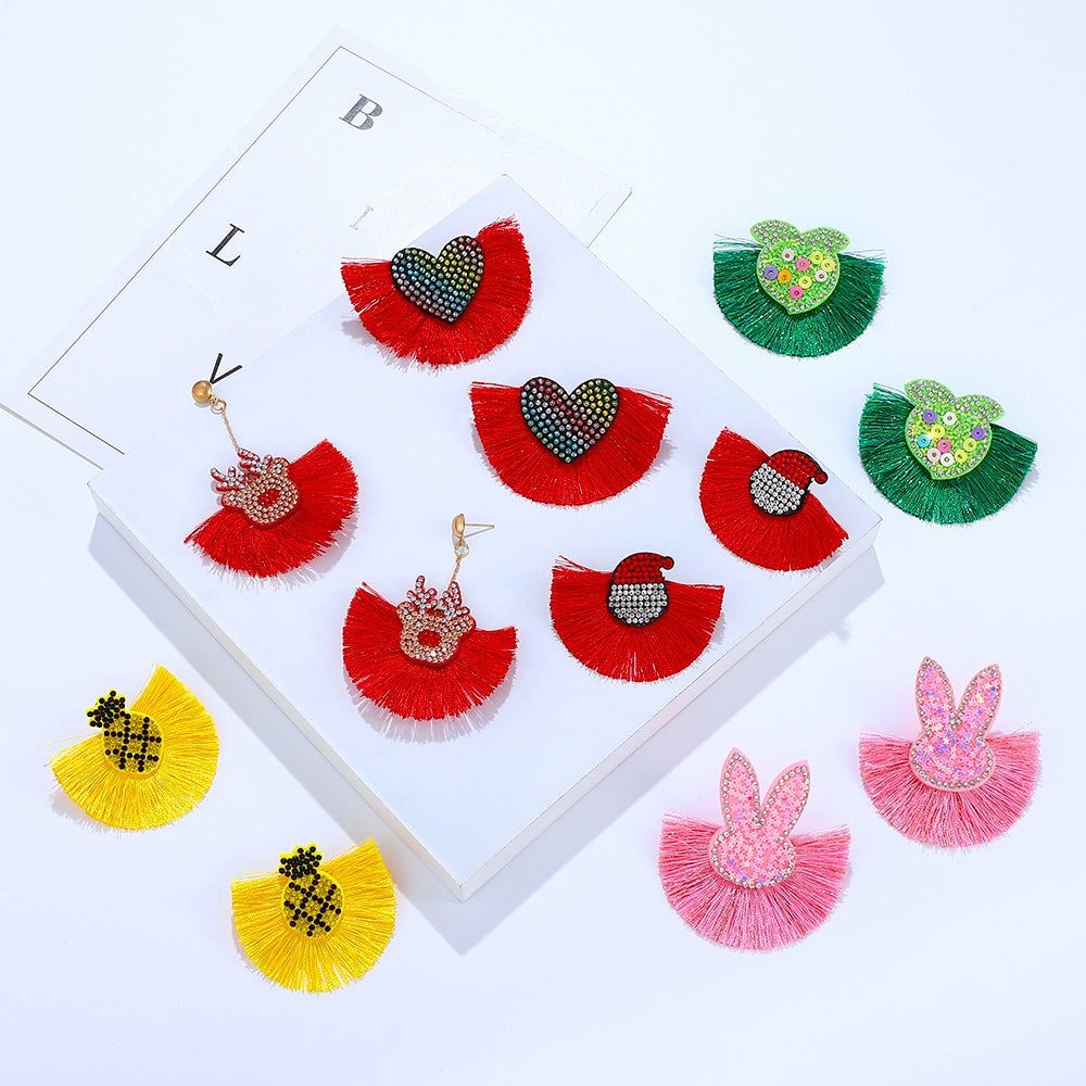 Wholesale Bohemian Tassel Exaggerated Rhinestone Elk Earrings