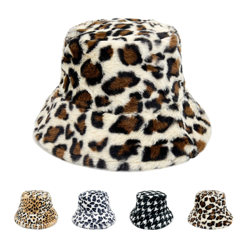 Wholesale Lamb Hair Leopard Pattern Fisherman's Hat
