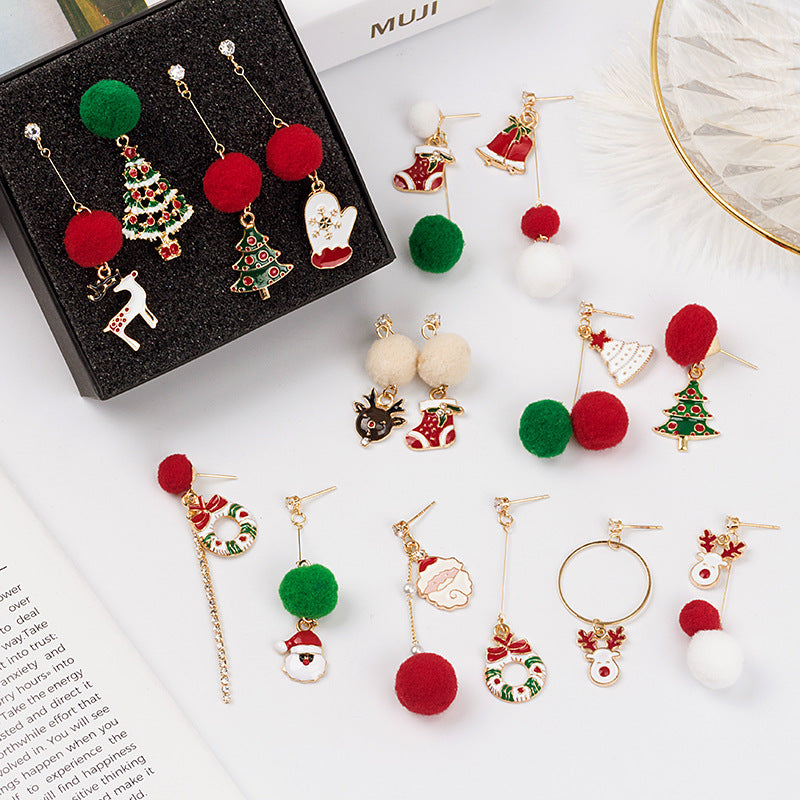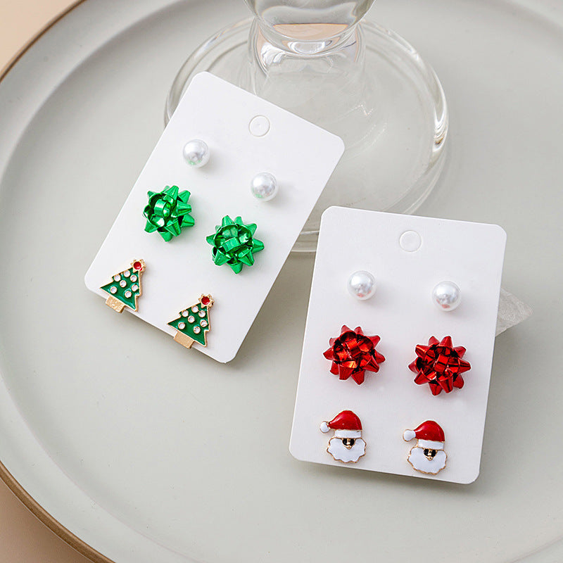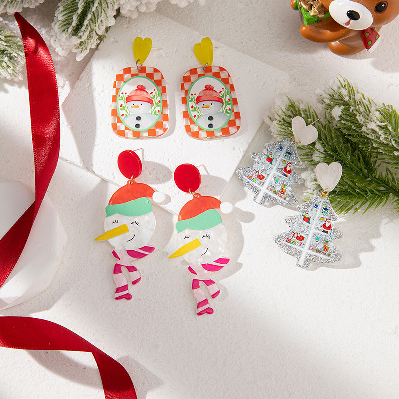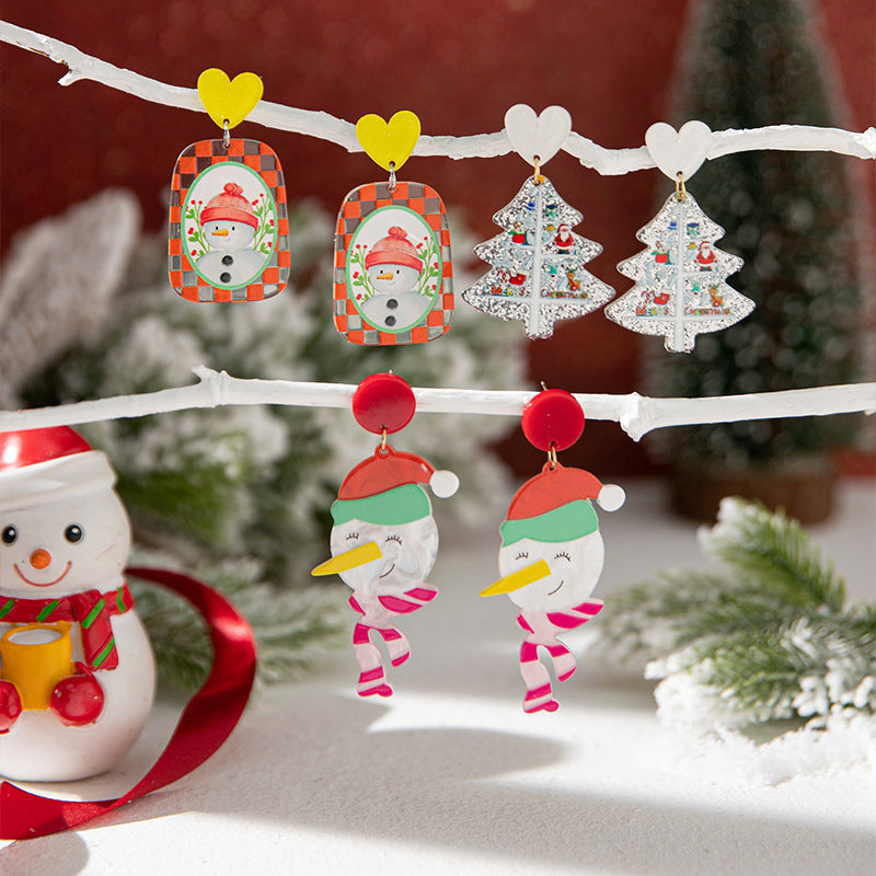 Wholesale Christmas Snowflake Christmas Tree Glass Diamond Handmade Pearl Rice Bead Earrings