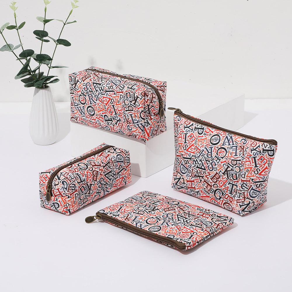 Wholesale 3D Letter Printing Canvas Waterproof Cosmetic Bag Multi-Piece Set Storage Bag