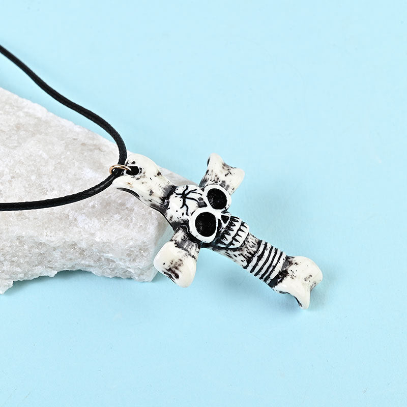 Wholesale Wooden Cross Halloween Skull Resin Necklace
