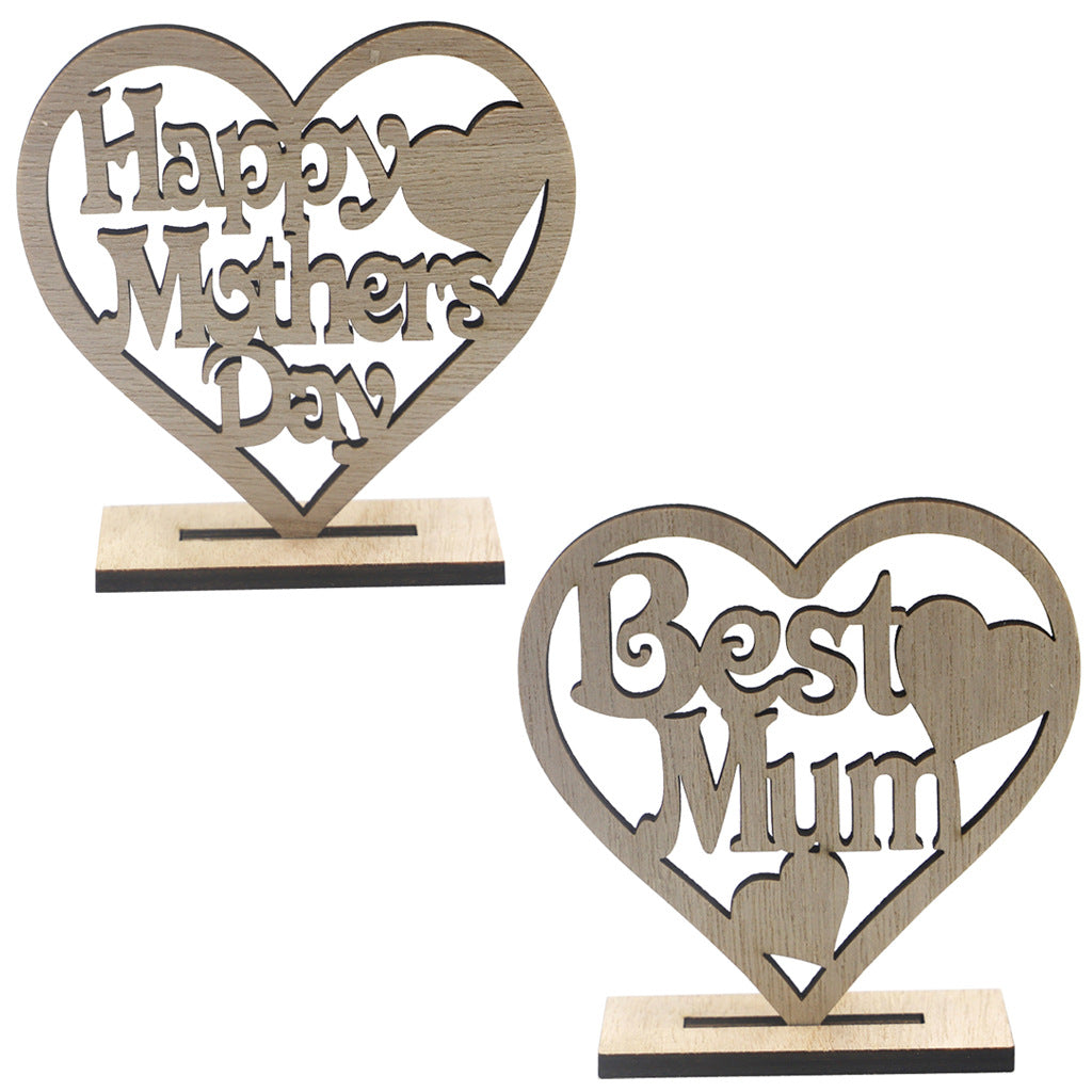 Wholesale of Wooden Mother's Day Heart-shaped Hollow Letter Ornaments