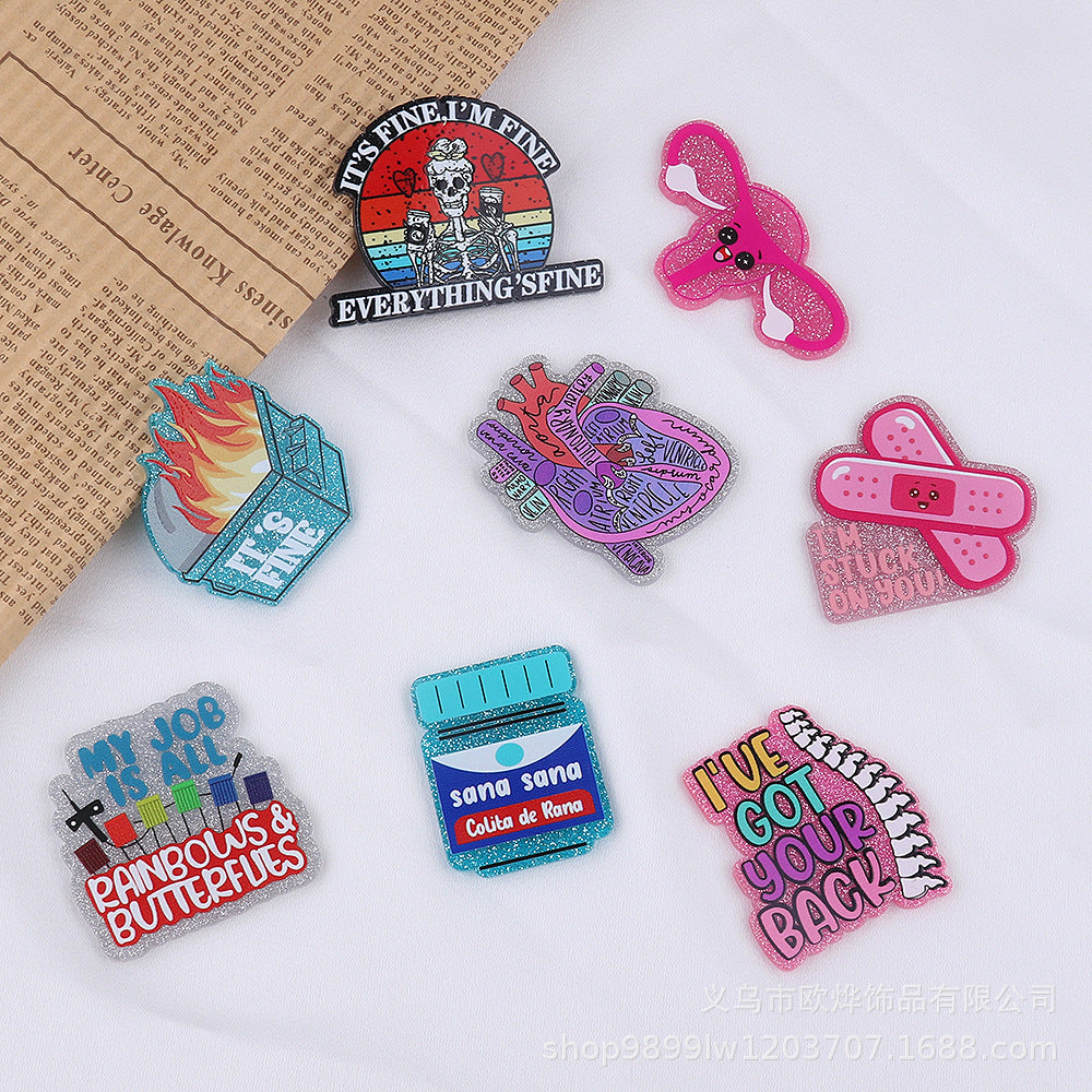 Wholesale 10pcs FlatBack Loose Powder Cartoon Acrylic Pin Cute DIY Patch