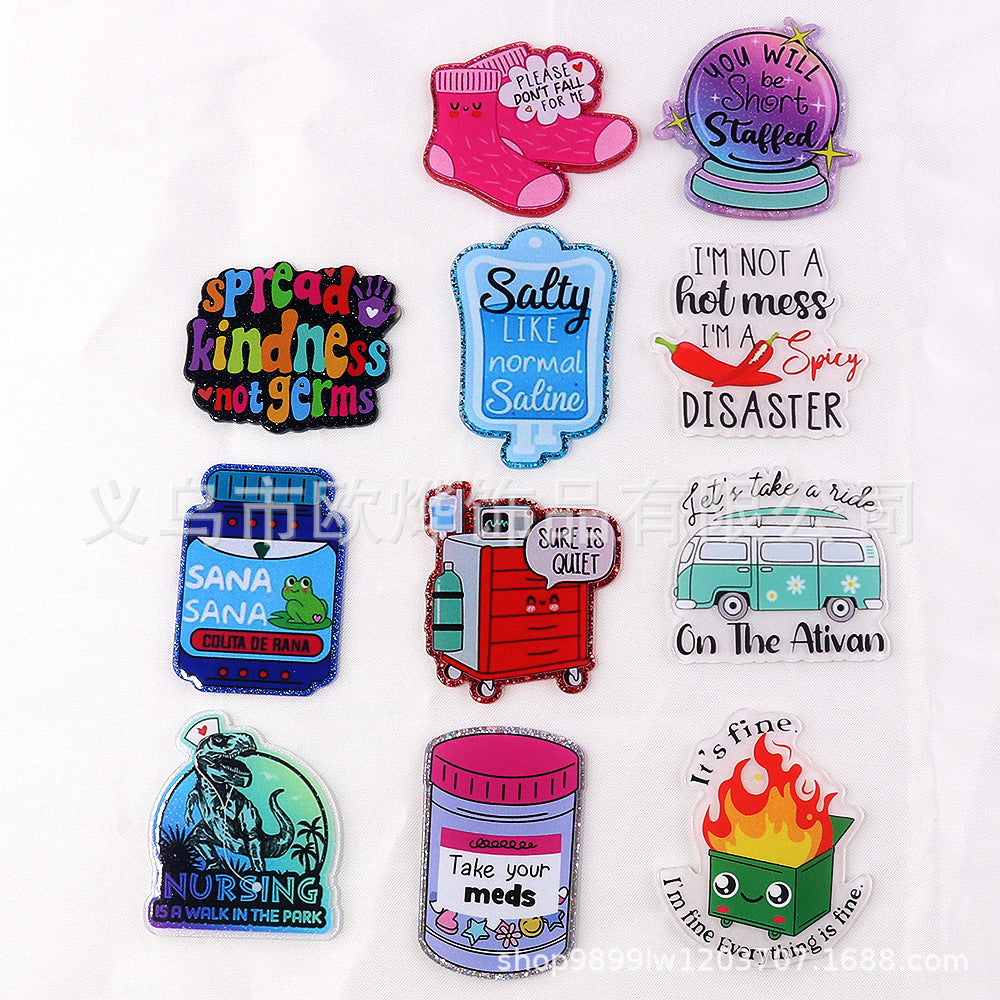 Wholesale 10pcs loose powder cartoon nurse clothes letters acrylic DIY patch accessories