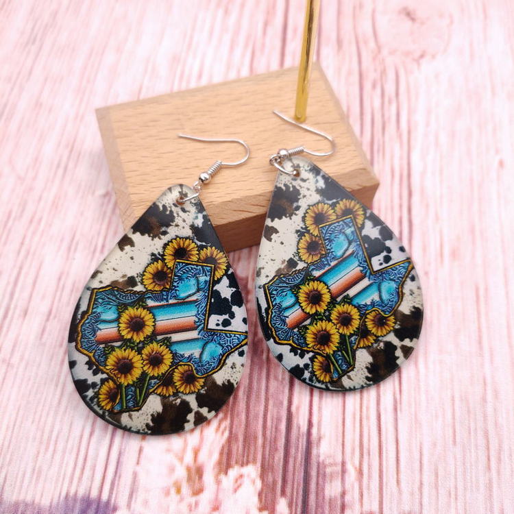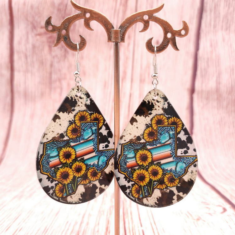 Wholesale Leopard Print Cow Print Western Style Hollow Leather Earrings