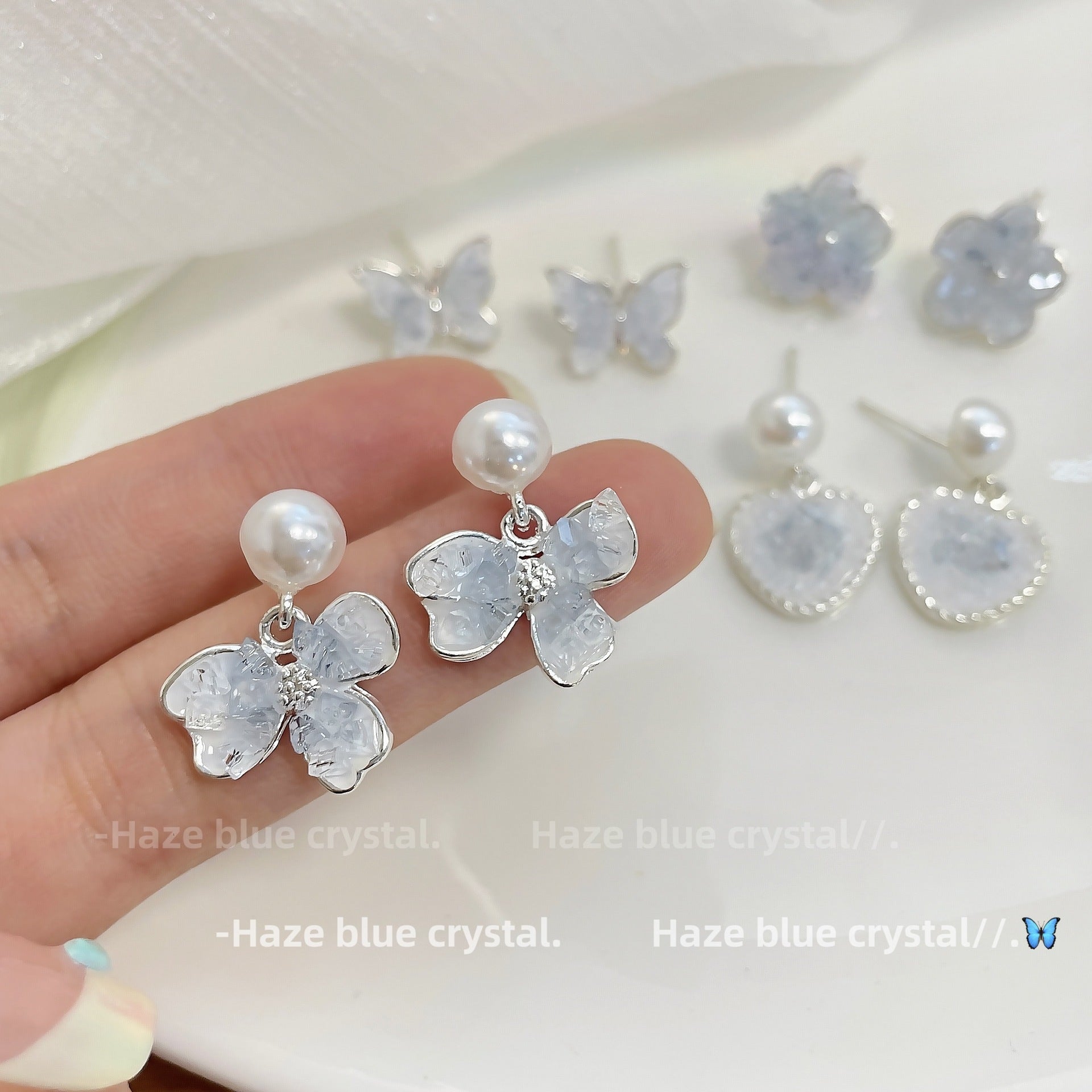 Wholesale Blue Crystal Flower Butterfly Alloy Earrings