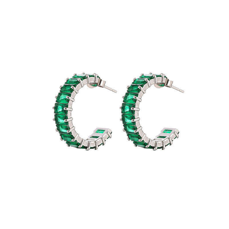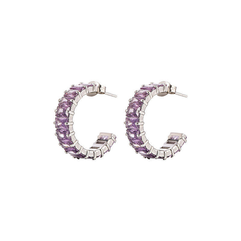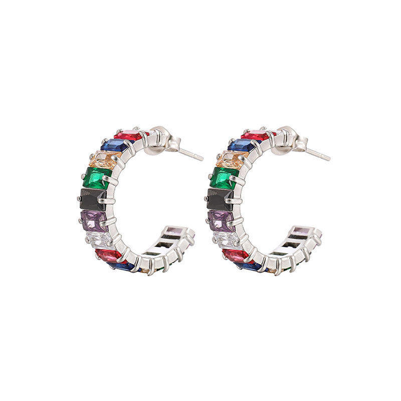 Wholesale Colored Zircon Stainless Steel Gold Plated C Shape Earrings