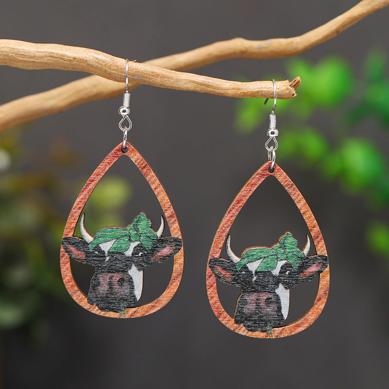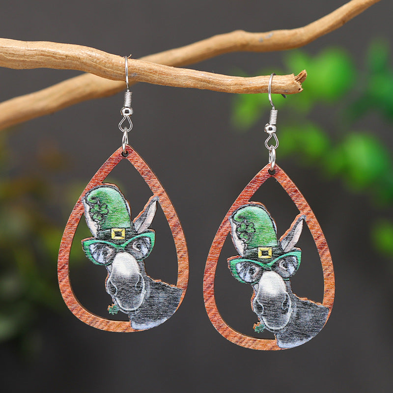 Wholesale Easter Cartoon Love Animal Shape Wooden Earrings