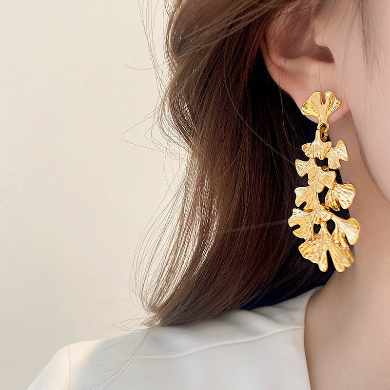 Wholesale Exaggerated Metal Ginkgo Leaf Earrings