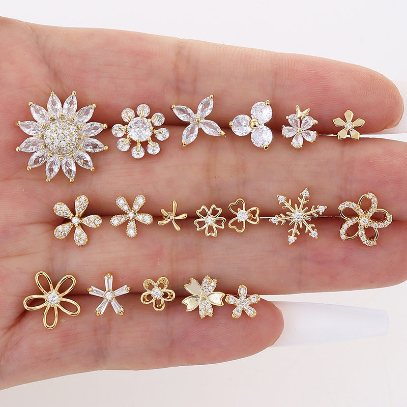 Wholesale s925 silver needle real gold electroplated gold copper inlaid zircon earrings