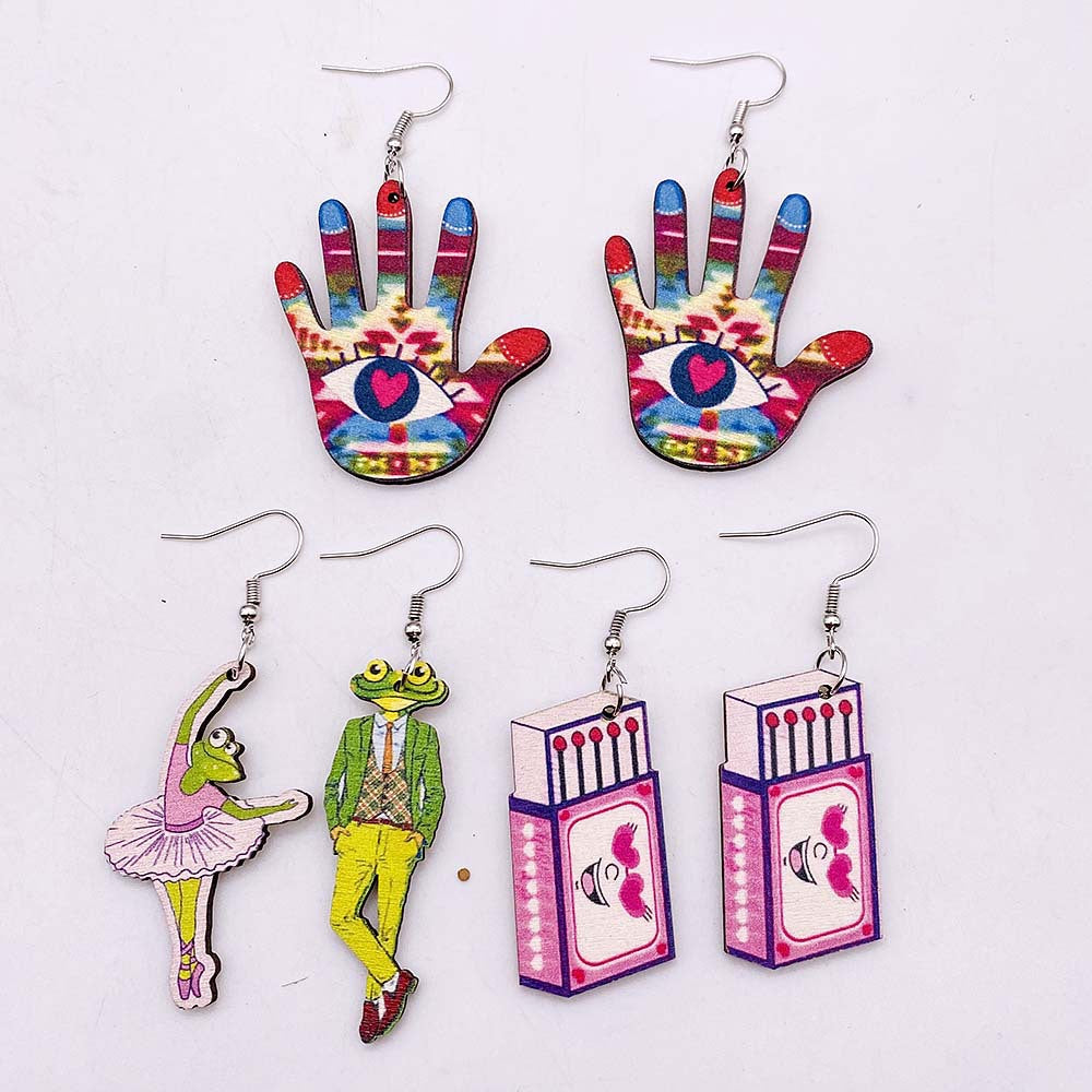 Wholesale Wooden Frog Prince Ballet Girl Pendant Earrings