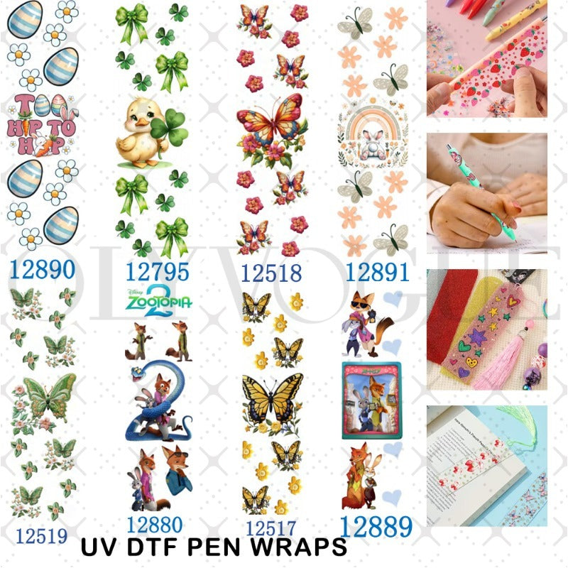 Wholesale 2/8/16pcs Cartoon Easter Butterfly Pen & Bookmark Stickers UV DTF Wraps OLY Exclusive