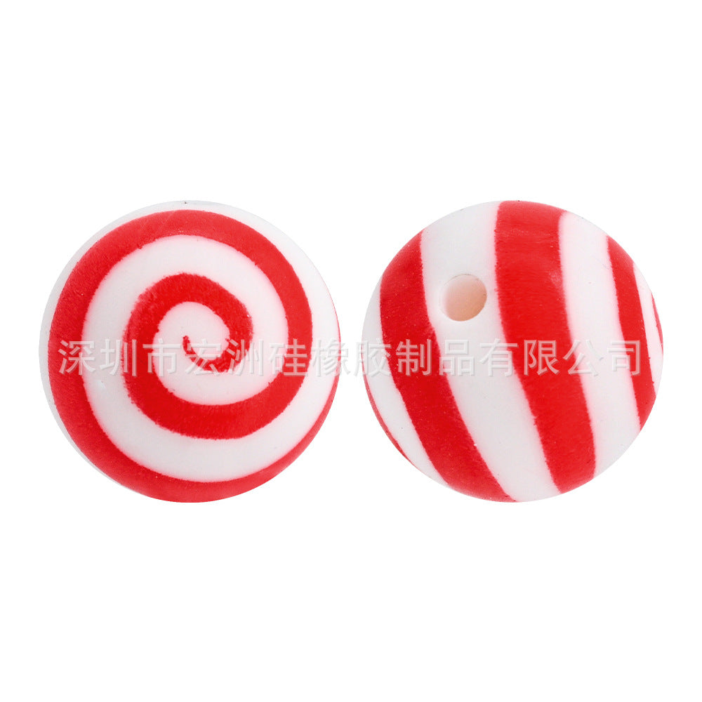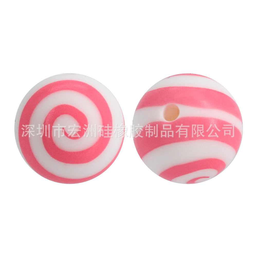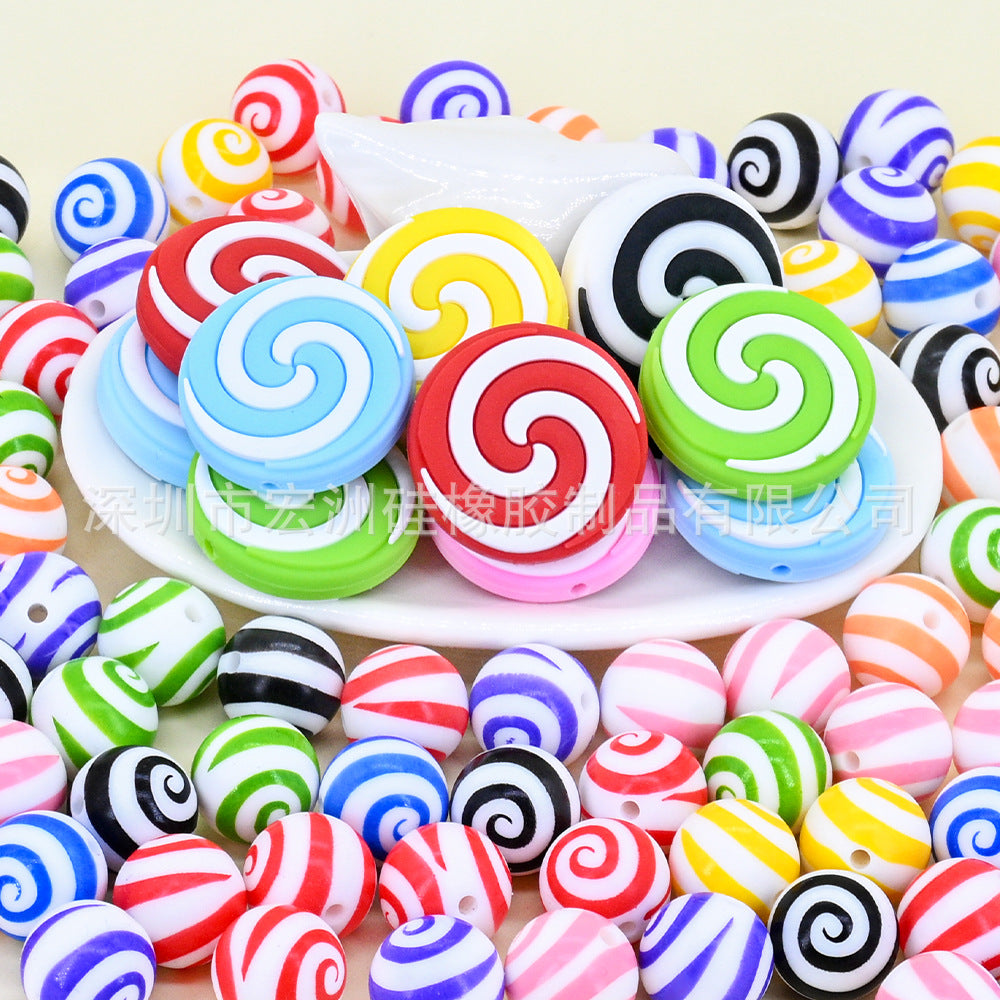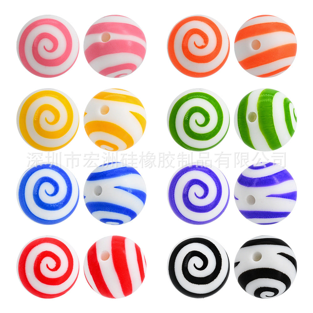 Wholesale 10pcs/pack Tornado Lollipop Food Grade Silicone Round Beads DIY Loose Beads