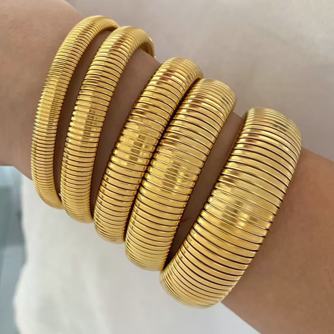 Wholesale Stainless Steel Gold Stretch Snake Bone Wide Bracelet