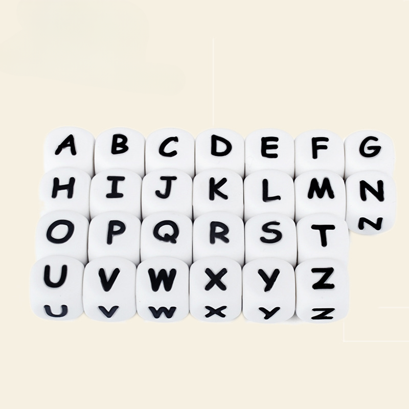 Wholesale 10pcs 10mm 26 English Alphabet Dice Silicone Focal beads